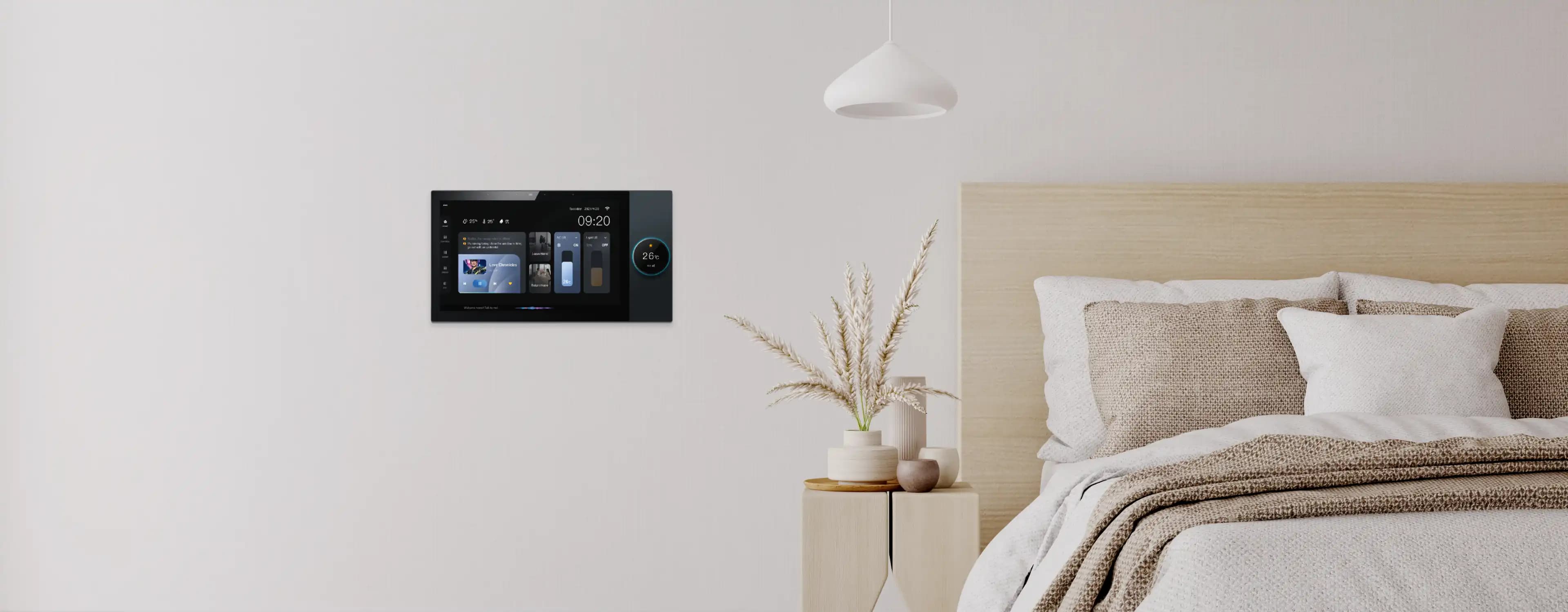 Mobile app or touch panel – many home control options for every household member. Control your home wherever you are. Receive notifications from the system and use an app tailored to you. Smart Panel Manage features from the touch panel equipped with gesture, temperature, and lighting sensors. Touch Panel Natural wood, glass, or exclusive leather? Match the front of the panel to the interior of your home.
